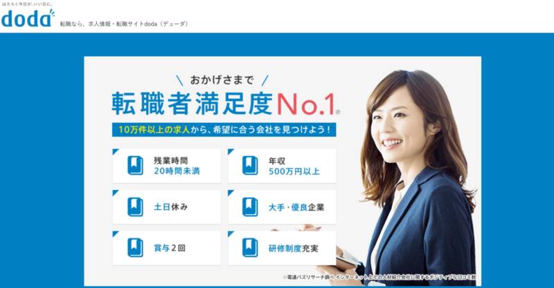 DODAは、転職者満足度No.1の求人情報の紹介や転職活動のサポートを行うサービスです。
